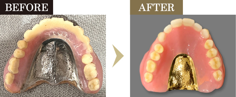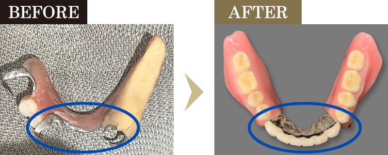 また、入れ歯の土台としていた歯に被せ物の治療を行いました。ずっと悩まれていた、舌で触れたときの違和感も軽減されています。